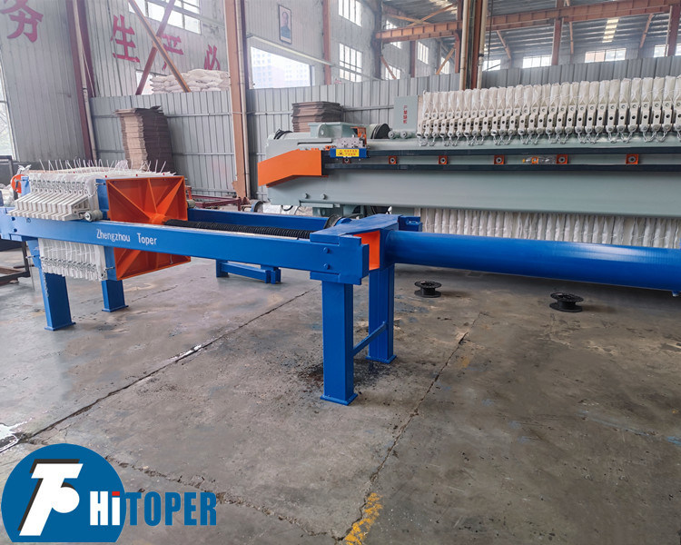 Silinder yang lebih panjang akan membantu menjadi zona pengungkapan yang lebih panjang, masing-masing pelat filter dihubungkan oleh rantai stainless steel secara keseluruhan,melalui kompresi silinder dan kembali untuk mencapai setiap pelat filter setelah dibuka, memaksa pengurangan kue secara otomatis, pendekatan nya sangat mengurangi waktu pengurangan filter pengurangan, meningkatkan pemanfaatan filter press.